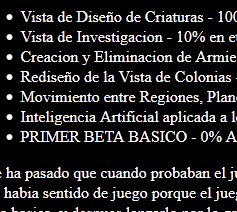 Tengo un problema donde los jugadores prueban la parte finalizada del juego y me dicen "Si me gusta, o tengo un par de sugerencias, pero.. y que mas?". No hay sentido de juego porque el juego no esta completo. Entonces mi nuevo gran objetivo es desarrollar el juego y dejarlo en una fase Beta Inicial y lanzarlo a lo grande. Pero sean libres de chekar los avances que vaya posteando en la pagina.